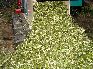 :破砕機(チップシュレッダー)でチップ化した剪定枝の状況