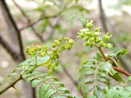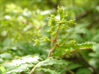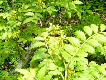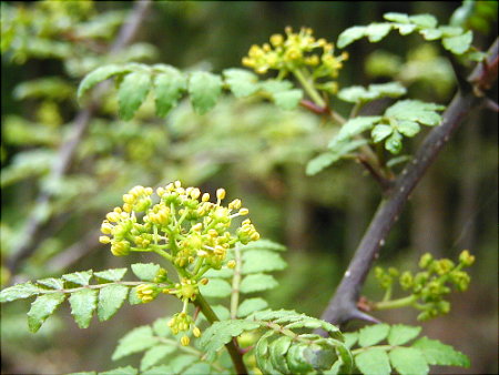 A 実山椒(雌木)と同じ時期の山椒の花(雄木)、これにはミツバチたちはあまり多くは来ないようです。